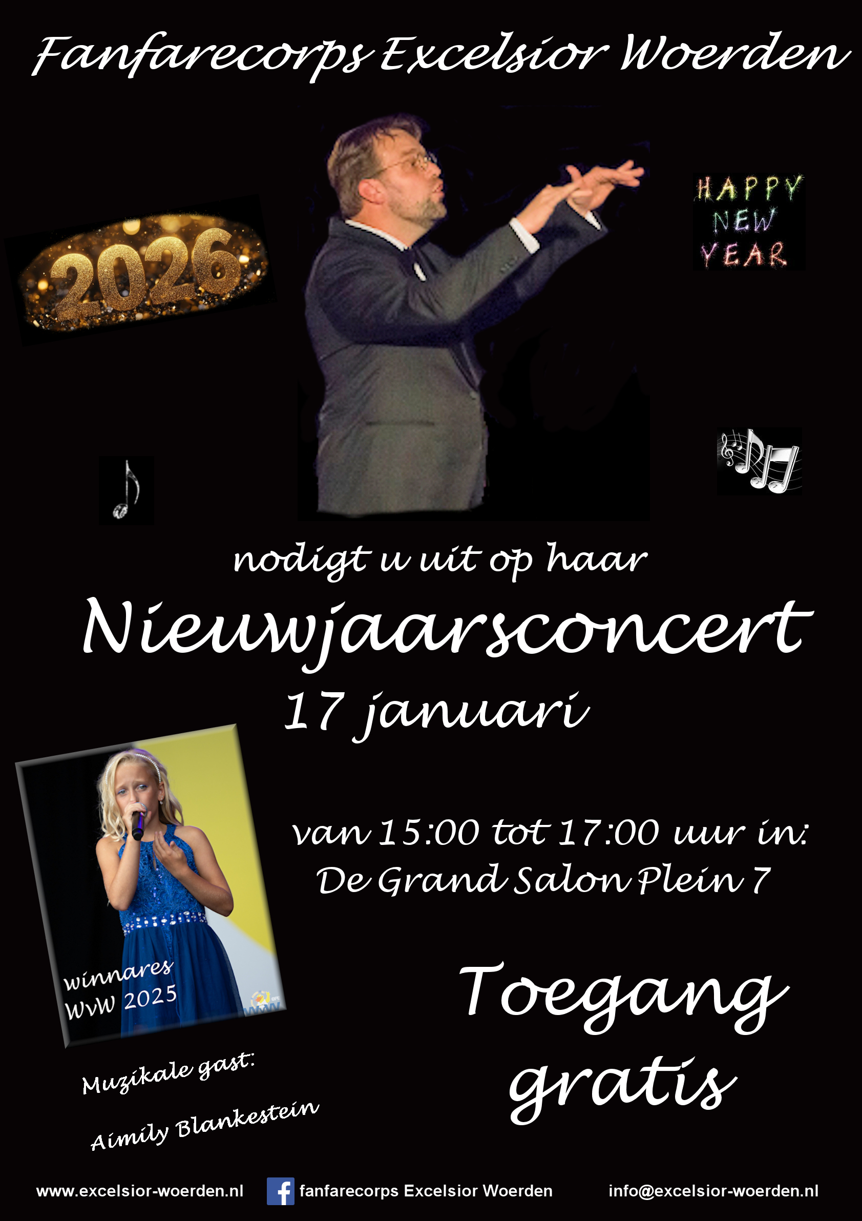 Maar het Nieuwjaarsconcert op 17 januari wordt ook aangegrepen om vooruit te kijken naar enkele spraakmakende activiteiten die voor 2026 op de planning staan, zoals het Nieuw Talent Orkest en het Singelgrachtconcert. Excelsior staat er bovendien om bekend om steeds weer nieuw Woerdens talent een podium te geven, en deze keer is dat de 10-jarige Aimily Blankestein. Zij won in 2025 tijdens de Woerdense Vakantieweek de Woerdy’s Got Talent wedstrijd en beleeft nu haar debuutoptreden met het Excelsior orkest. Aimily heeft voor 2026 nog meer grote plannen, want ze wil een eigen nummer uitbrengen en met het Junior Songfestival en The Voice Kids meedoen.